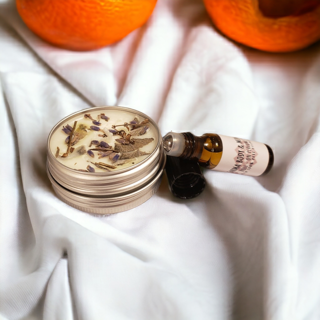Roll-on perfume perfectly accompanies this set, made with 100% organic essential oils. Apply to wrists neck and behind ears.